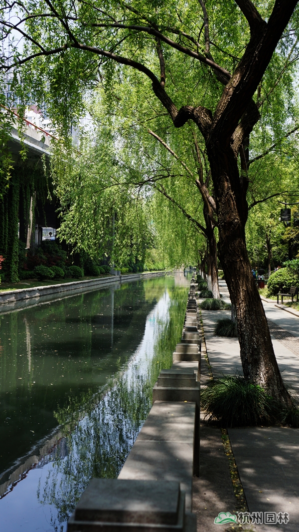 該工程位于杭城南部,施工范圍為倉河下路至鳳山橋,內(nèi)容包括綠化種植、土方、園路平臺(tái)、廊架棧道、雕塑基礎(chǔ)、河道清淤等。工程在充分尊重歷史文脈的基礎(chǔ)上,再現(xiàn)了生態(tài)優(yōu)美的自然環(huán)境,綠意盎然的植物、舒緩平坦的園路、飽經(jīng)滄桑的古橋、栩栩如生的雕塑,與沿街的粉墻黛瓦、名人故居等遙相呼應(yīng),千年中河美景,盡顯無遺。