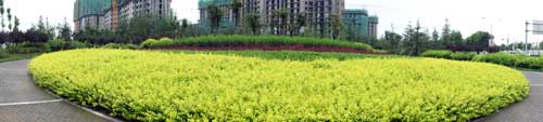 據(jù)高經(jīng)理介紹,該工程是壽光市2009年的一項重點市政工程,本著綠色、生態(tài)、自然的原則,在保留部分大樹的基礎(chǔ)上,對道路景觀進(jìn)行了全新改造。工程由北至南,依次設(shè)置下沉廣場、北廣場、南廣場、方形廣場等多個景觀節(jié)點,每個節(jié)點的植物配置、地面鋪裝等都各不相同,形成一個個獨(dú)具特色的小場景;同時,又通過錯落有致的植物搭配、蜿蜒曲折的游憩步道,將整個工程貫穿起來,使得整體的景觀效果統(tǒng)一中富于變化,開闊中層次分明。