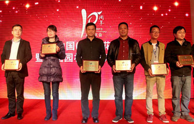大會揭曉并頒發(fā)了“突出貢獻獎”、“貢獻獎”、“最佳合作伙伴獎”、“2013年優(yōu)秀參展獎”、“2013年產(chǎn)品金獎”等多個獎項,以此表彰一批多年來為中國(蕭山)花木節(jié)的成功舉辦做出積極貢獻的個人和單位。其中,杭州市園林綠化工程有限公司榮獲“最佳合作伙伴獎”、“2013年優(yōu)秀參展獎”,參展的產(chǎn)品“紅寶石”紫薇和“火煉金丹”桂花榮獲“2013年優(yōu)秀產(chǎn)品獎”,總經(jīng)理張炎良上臺領取了獎牌。