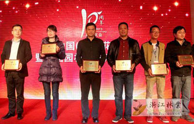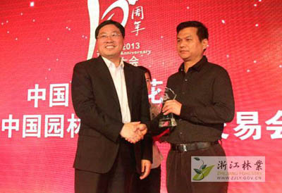 大會揭曉并頒發(fā)了“突出貢獻獎”、“貢獻獎”、“最佳合作伙伴獎”、“2013年優(yōu)秀參展獎”、“2013年產(chǎn)品金獎”等多個獎項,以此表彰一批多年來為中國(蕭山)花木節(jié)的成功舉辦做出積極貢獻的個人和單位。其中,杭州市園林綠化工程有限公司榮獲“最佳合作伙伴獎”、“2013年優(yōu)秀參展獎”,參展的產(chǎn)品“紅寶石”紫薇和“火煉金丹”桂花榮獲“2013年優(yōu)秀產(chǎn)品獎”,總經(jīng)理張炎良上臺領(lǐng)取了獎牌。