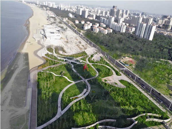 煙臺屬暖溫帶季風(fēng)氣候,但是瀕海地又受到海洋性氣候的影響,經(jīng)常受海潮海風(fēng)侵襲和土壤鹽漬化、干旱化威脅,導(dǎo)致適宜生存的植物種類少、綠化難度大。該項目緊臨海邊,因此,如何正確選擇植物品種,在提高植物成活率的同時又保證景觀效果的豐富,是其面臨的一大難題。