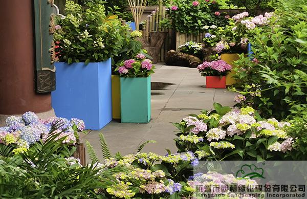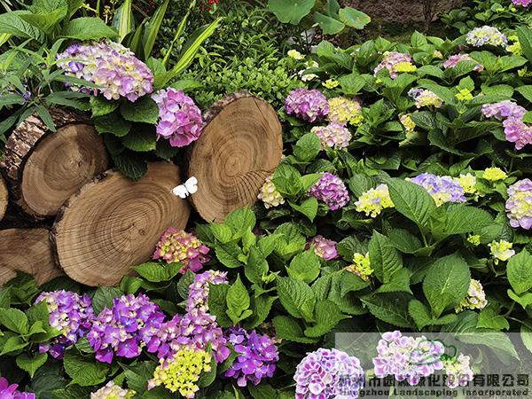 在城隍閣二樓平臺,杭園股份贊助的50余個品種、近400余盆的繡球花也將驚艷亮相,通過豐富的造景方式,充分展現(xiàn)繡球花的魅力。不管是種植在色彩明艷的花箱中,還是與枯木、竹籬笆、瓦片等的搭配,繡球都展現(xiàn)出絕美的風姿,吸引著人們探尋的目光,忍不住拿起相機或手機,留下一個個精彩瞬間。其中,花大色艷、色彩可調的大花繡球‘搖擺樂’、‘藍寶石’,矮小可愛,青澀潔白的圓錐繡球‘活力青檸’,花如寶塔、葉形如掌的重瓣櫟葉繡球‘雪花’等,是杭園股份今年主推的品種,表現(xiàn)都非常搶眼。