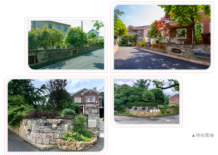 在進行景墻施工時,根據(jù)每家的房屋建筑特色選擇了不同的材料和植物配置手法。比如,建筑外立面為紅色的,景墻以紅色磚為主,搭配月季、佛甲草等植物;建筑外立面為灰色的,景墻以淺黃色磚為主,結(jié)合小木樁或仿竹籬笆,搭配石竹、美女櫻等植物;建筑外立面有大理石點綴的,景墻以桐廬石為主,輔以裝飾過的輪胎,點綴佛甲草、常春藤等植物。不同的處理手法,使得家家戶戶的景墻既有連續(xù)性,又有各自的風(fēng)格。