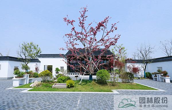 盆景園內(nèi),一棵棵造型別致的盆景,是海棠另一種形態(tài)的展現(xiàn)。院子中央,高大的‘豐盛海棠’正迎來盛花期,深粉色的花朵密密匝匝布滿枝頭,成為院中最引人矚目的風(fēng)景,與院子里的五棵柿子樹搭配種植,組合成“五世同堂”的美好寓意,寓示著日子紅紅火火、闔家歡樂吉祥。在主建筑旁的天井處,采用盆景化的造園手法,運(yùn)用南天竹、黑松、石子等元素營造的植物小景,自成一方小天地,與整個盆景園形成“園中園”的關(guān)系,展現(xiàn)出造園者的奇妙心思。