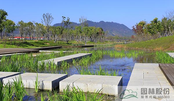 項目還充分利用滸溪及靈峰湖沿線的湖灣和眾多洼地,引水入園,打造雨水花園、下沉式綠地等,通過豐富的植物配置與景觀小品,形成沿湖而生的各個景點,并設置各色景觀橋連通內塘與外湖的生態(tài)通道,將周邊景點有機串連?;据谵ň吧鳟悾馍缴嘤吵扇?,整個滸溪沿線形成一個可循環(huán)的生態(tài)系統(tǒng),有效改善和美化了周邊環(huán)境,展現可持續(xù)發(fā)展的造園理念。