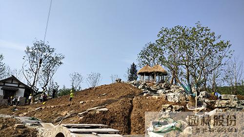 自今年四月份開工以來,杭州園的各項(xiàng)工作進(jìn)展有序。截止目前,主體建筑、水系跌瀑、溪流假山等基本完工,大部分鋪裝已經(jīng)完成,展園景觀風(fēng)貌初見雛形。接下來主要進(jìn)行喬木和大灌木的種植工作。正值夏季高溫時節(jié),為提高樹木的成活率,施工中多措并舉,提前將挑好的大樹進(jìn)行修剪、斷根、噴灑營養(yǎng)液;采用通氣透水的材料包裹土球,進(jìn)行容器假植;制定精細(xì)澆水養(yǎng)護(hù)方案等,使植物清涼度夏,早日綻放風(fēng)華。