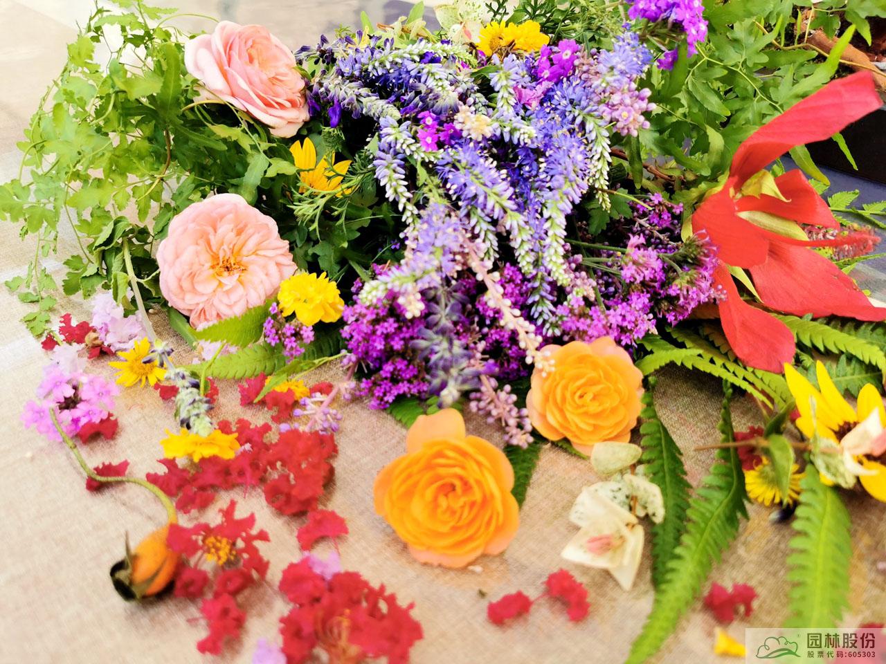 處理好的花材放置陰涼通風(fēng)處,讓表面水分自然散發(fā)。同品種、同色彩的植物分類放好,避免后期制作時(shí)出現(xiàn)顏色混淆。
