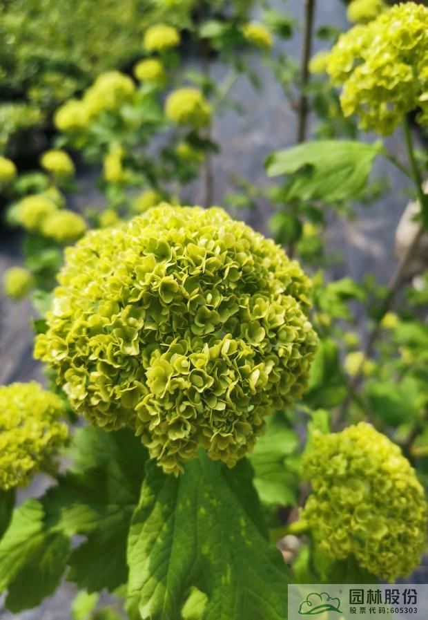 忍冬科莢蒾屬,落葉灌木。葉三裂,秋色葉紅色。聚傘花序,全為不孕花,花大且繁,花色初開綠色,萌萌如綠豆糕,后逐漸變純白。植株萌芽力強(qiáng),耐寒耐熱,可耐-30℃低溫。生長迅速,適合庭院觀賞。