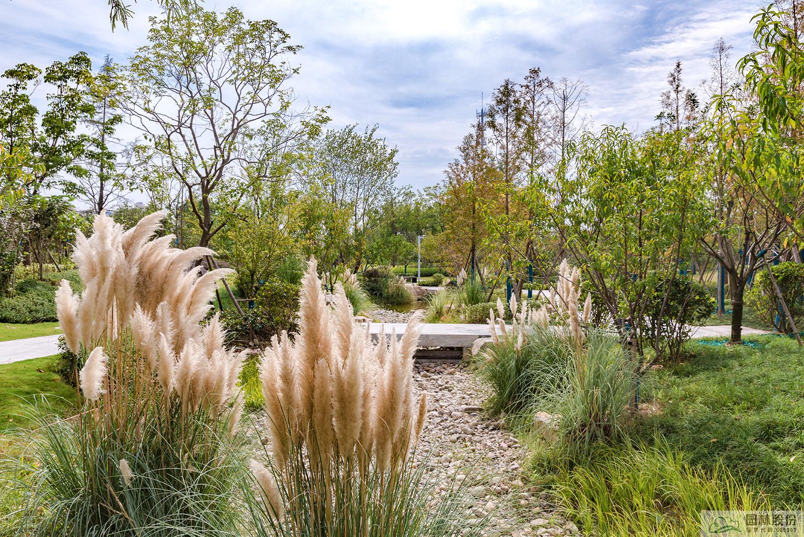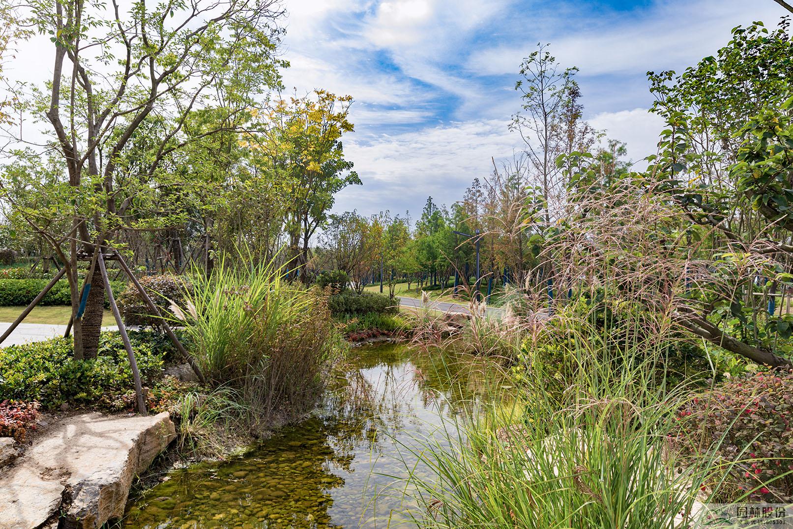 運河灣公園是一個以海綿城市理念打造的景觀公園,從旱溪、濕塘等形式豐富的海綿設施,到各類透水鋪裝材料的應用,海綿城市理念貫穿于公園建設的各個環(huán)節(jié)。