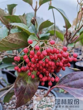 莢蒾屬植物既可觀花又可觀果,且絕大部分種類都是可以觀果的,只是被開發(fā)應用的寥寥無幾,故仍有許多優(yōu)良的觀果種類有待開發(fā),如皺葉莢蒾的一些雜交品種及很多本土原種,像宜昌莢蒾、莢蒾、傘房莢蒾等等,均具有良好的開發(fā)潛力。后期,園林股份將繼續(xù)加大莢蒾屬植物的開發(fā)力度,力爭更多的莢蒾產品在美麗中國建設中大放異彩。