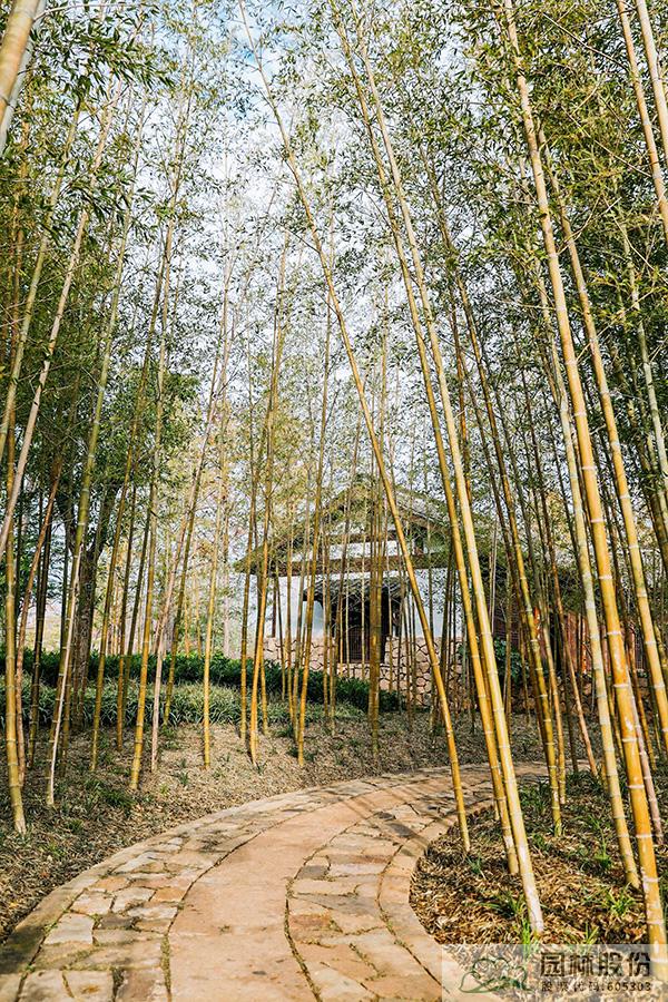 竹是新時代杭州重要的文化載體之一。因此入口左側(cè)選擇西湖環(huán)境中“茂林修竹”之元素,以毛竹種植為主,形成夾景,曲徑通幽。