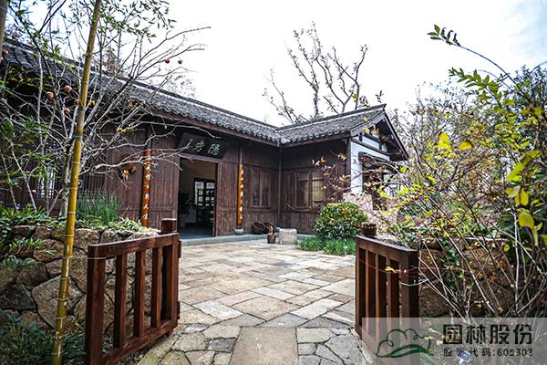竹隱:主入口采用江南典型的錯落雙面門樓造型,木結(jié)構(gòu)古雅清新,上書“家在錢塘”點明主題。正前方主題照壁形成障景,展現(xiàn)杭州園設(shè)計靈感與造園精神。