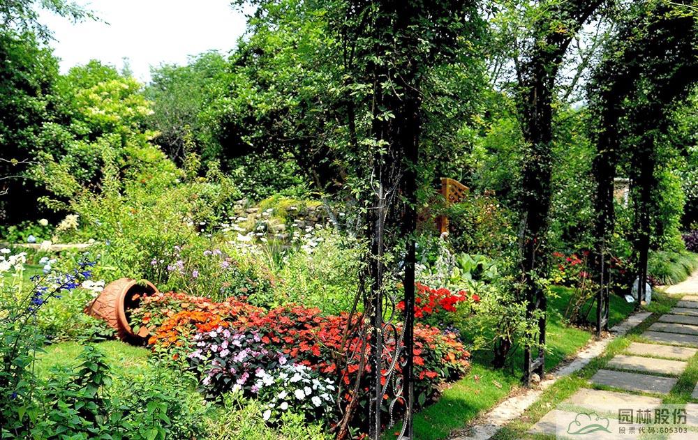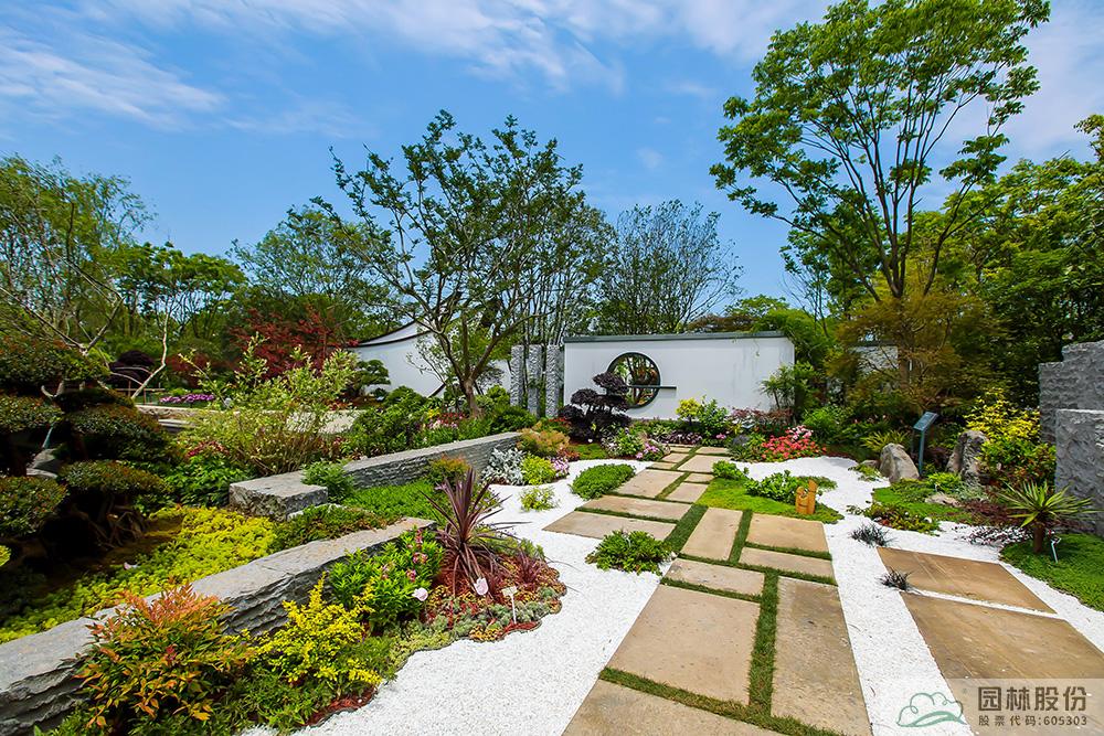 2017年,張楠主持設(shè)計(jì)與施工的“首屆中國花境競賽”參賽作品《花溪疊翠·芳滿庭》,位于臨安青山湖花園中心室外景觀展示區(qū),在現(xiàn)有庭院布局基礎(chǔ)上,外圍景觀結(jié)合木香藤架,打造林蔭、陶罐花溪、鼠尾草等景觀系列,營造百花齊放、芳菲無數(shù)滿庭院的意境;內(nèi)部則用櫸樹、景石、石籠擋墻及園路圍合成半開敞空間,以八仙花為主材、搭配鳶尾、石榴、落新婦、百子蓮等,打造3個(gè)花境組團(tuán),營造人們熱愛生活、向往美好的鄉(xiāng)村私密花園美景。歷經(jīng)數(shù)月的精心施工、養(yǎng)護(hù)與專家評比,該作品從43個(gè)參賽作品中脫穎而出,榮獲“首屆中國花境競賽金獎(jiǎng)”。