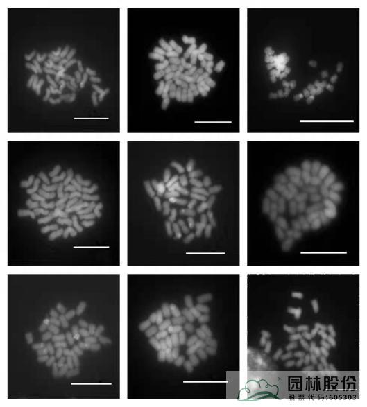 2019年在上海市科委重大攻關(guān)項(xiàng)目《八仙花高質(zhì)量苗木標(biāo)準(zhǔn)化繁育與栽培技術(shù)》(編號:19DZ1203503)的資助下,杭州市園林綠化股份有限公司浙江園林資源與環(huán)境技術(shù)研究院開展了江南地區(qū)繡球新品種的專項(xiàng)培育,項(xiàng)目通過對國內(nèi)外引進(jìn)的92種繡球種和品種進(jìn)行綜合評價,再根據(jù)染色體分析,篩選出21個具有觀賞特色或新枝開花或高抗性的資源作為親本,包括14個大葉繡球品種、3個喬木繡球品種、3個圓錐繡球品種、中國繡球原種和蠟蓮繡球原種。