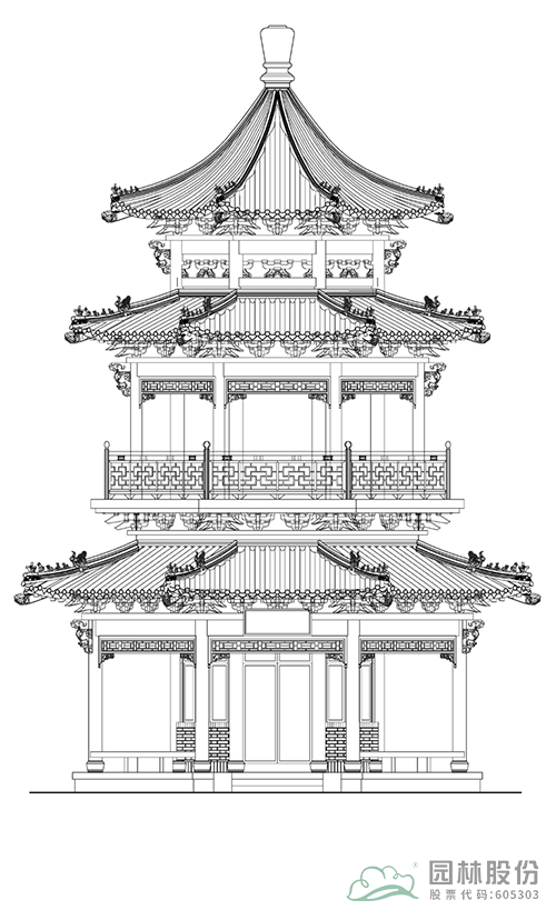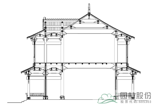 3.尺度比例:依據(jù)明清工程做法確定主體構(gòu)架、屋頂結(jié)構(gòu)、維護(hù)結(jié)構(gòu)、臺(tái)基地面和裝飾構(gòu)件五部分的樣式、比例、材料選擇等,使建筑與周圍的景觀相協(xié)調(diào)。