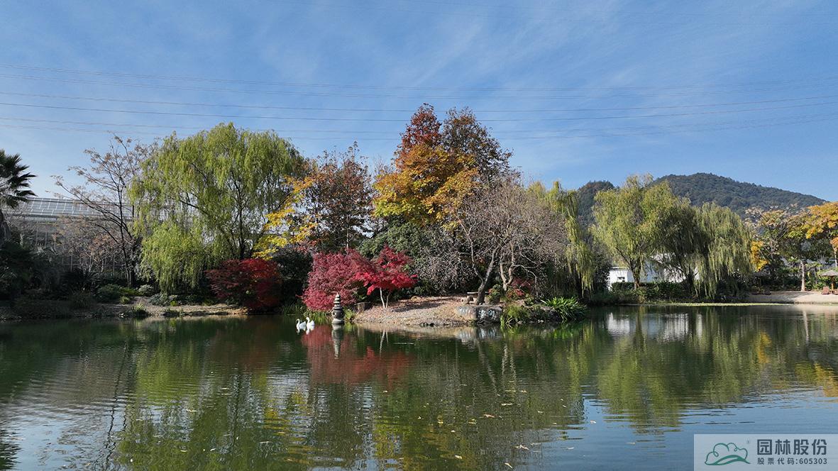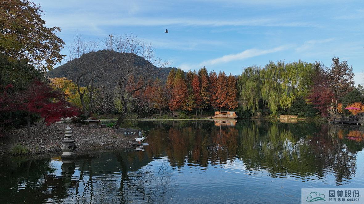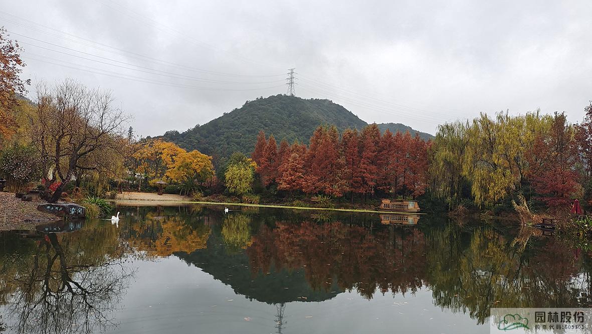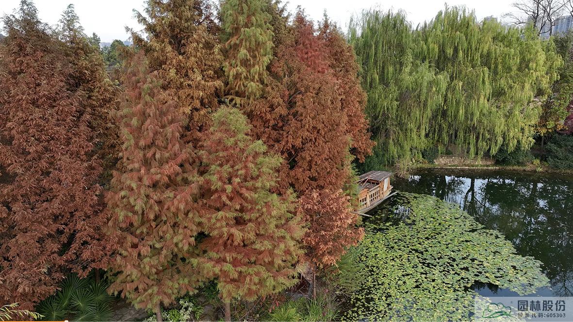 金黃的無患子、絢麗的紅楓、黃紅變換的楓香構(gòu)成了畫境園初冬繽紛世界的三部曲。半島的烏桕、池塘對岸的水杉水松池杉混交林,則如跳動(dòng)的音符,共同譜寫著初冬的樂章。